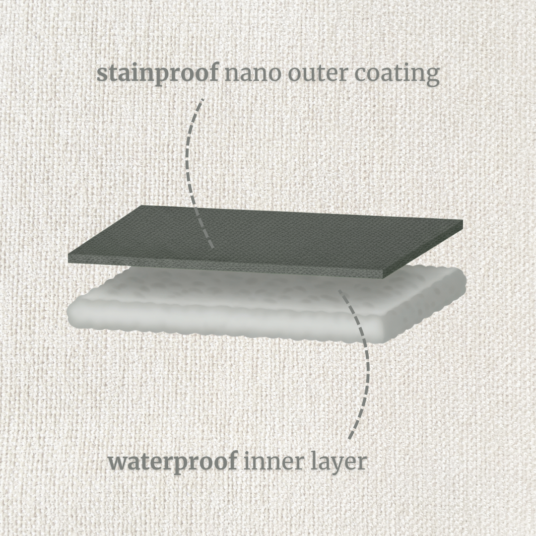 StormSkin™ is a new innovative fabric technology that combines a stainproof nano outer coating with a waterproof inner coating.